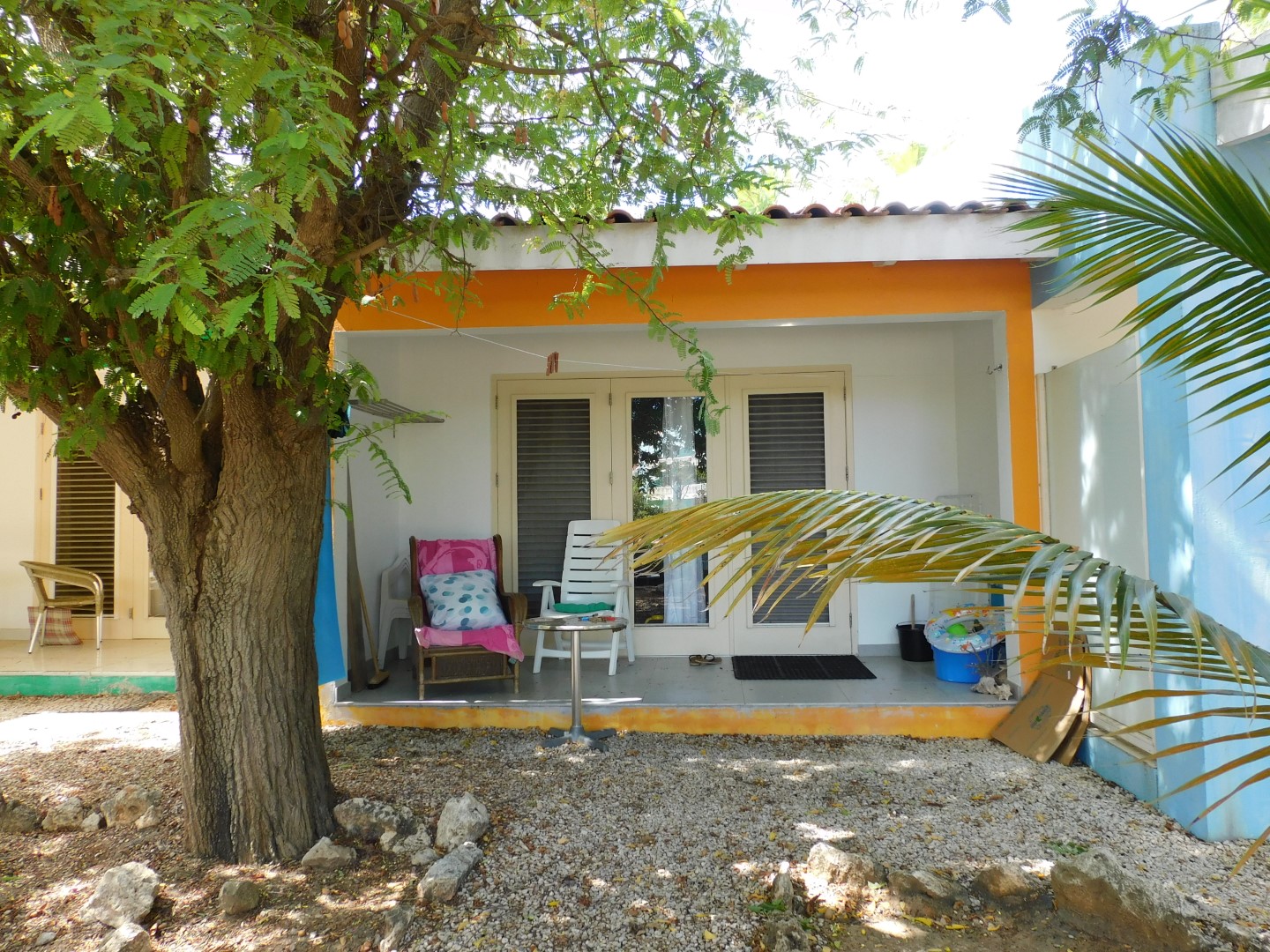 Een goed onderhouden 1 slaapkamer appartement gelegen op het terrein Caribbean Court wat gelegen is naast Plaza Beach Resort. Er is een eigen porch met uitzicht op de gemeenschappelijke tuin en zwembad. Er is een gezellige living met openkeuken die is voorzien een plafondfan, een grote koelkast, elektrische kookplaat, afzuigkap en oven.De badkamer is voorzien van een dubbelewasbak en regendouche daarnaast is er een wasmachine aangesloten. De slaapkamer is heeft een twee persoons bed een lade kast en vrij grote open kleding rek. Er is een strijkijzer en strijkplank aanwezig. Ook heeft de slaapkamer een airco.