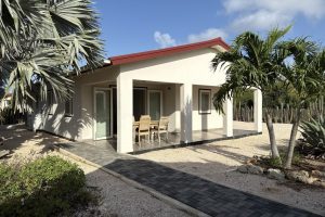 Layout & features: 3 bedrooms, equipped with air conditioning and ceiling fans 1 master bathroom, adjacent to the master bedroom, equipped with washbasins, shower, and toilet 1 guest bathroom, with washbasin, shower, and toilet Living room with abundant natural light Open kitchen with high-quality built-in appliances Two covered porches, the largest of which is perfectly positioned to catch the breeze Spacious garden & outdoor living: 614 m² freehold plot; The garden is fully covered with gravel and is a low-maintenance garden, with a paved walkway to the house. The front garden is planted with (now fully grown) Bismarck palms. The back garden still has sufficient space for the construction of a palapia and/or a swimming pool. Excellent location, facing the breeze. Fully fenced: the fence consists partly of mesh, partly of a stone wall, and partly of mesh with greenery. Lots of privacy. Storage shed (with connection for the washing machine). Parking: in the parking bay in front of the house and via the driveway gate on private property. Technical specifications: 8 solar panels and WEB connection (the solar system is certified and energy is fed back into the grid). 220V electricity in whole house