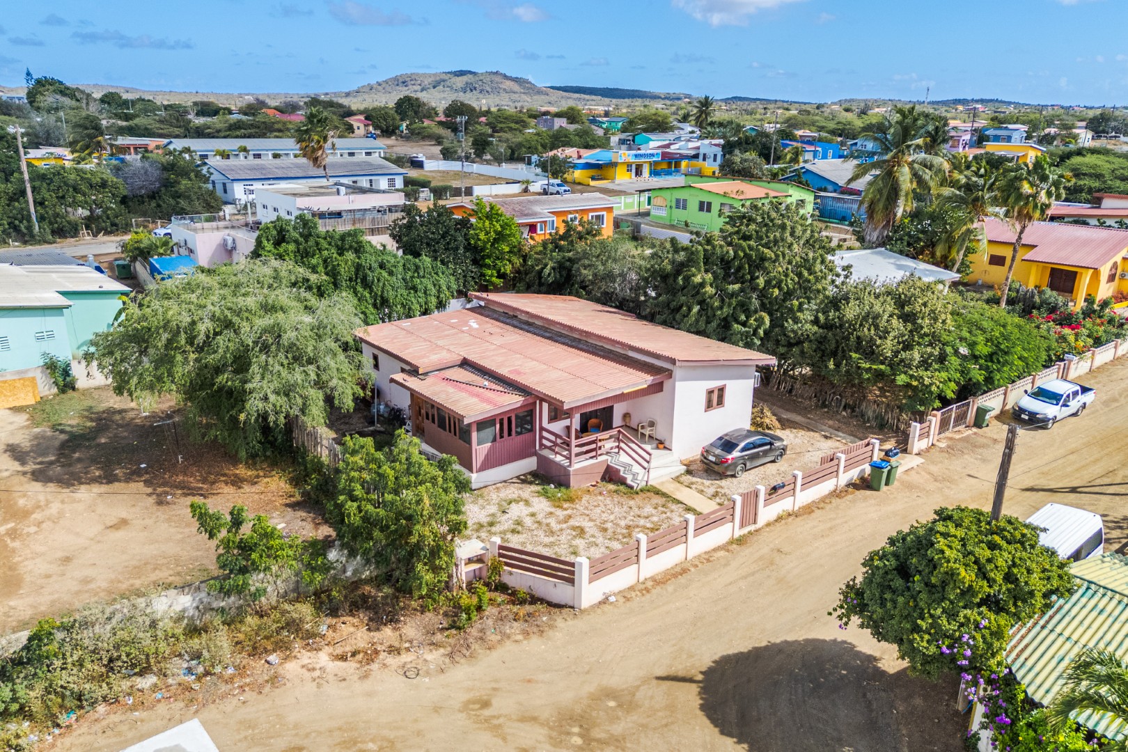 This detached home is situated on an unpaved road running parallel to Kaminda Lagoen. It is conveniently located near the connecting road between Antriol and Nikiboko, just 2 miles from the center of Kralendijk. Finally, the house features wooden window frames and a spacious garden that still needs landscaping.
