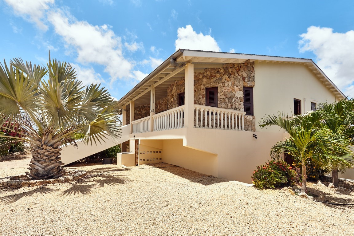 This studio is located in a quiet green area in the Santa Barbara district, located at Kaya Dorado number 13. The house is divided into three: the separate upstairs apartment is occupied by the owner and the two studios below are rented out separately. They have a private entrance with a shared hall and overlook the green garden.