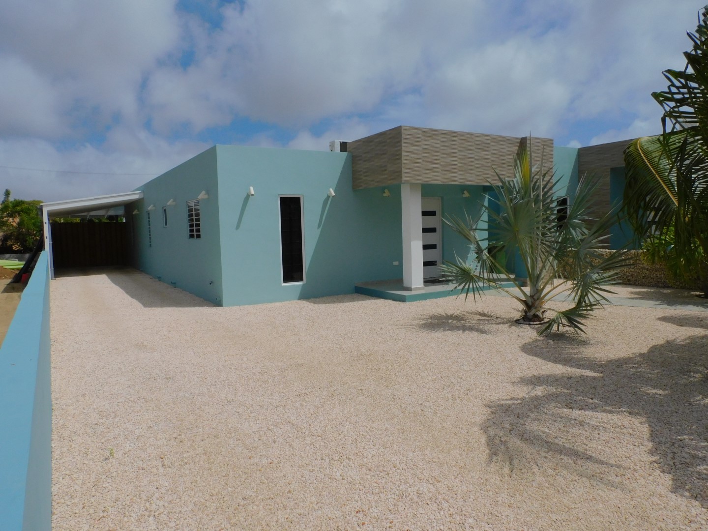 This semi-detached house is located in the Nikiboko district. It is very tastefully decorated and is offered fully furnished. Upon entering you step into the living room with an open kitchen and cooking island. There are three bedrooms and two bathrooms, The living room and bedrooms are equipped with an air conditioner. There is a storage / laundry room with washing machine.