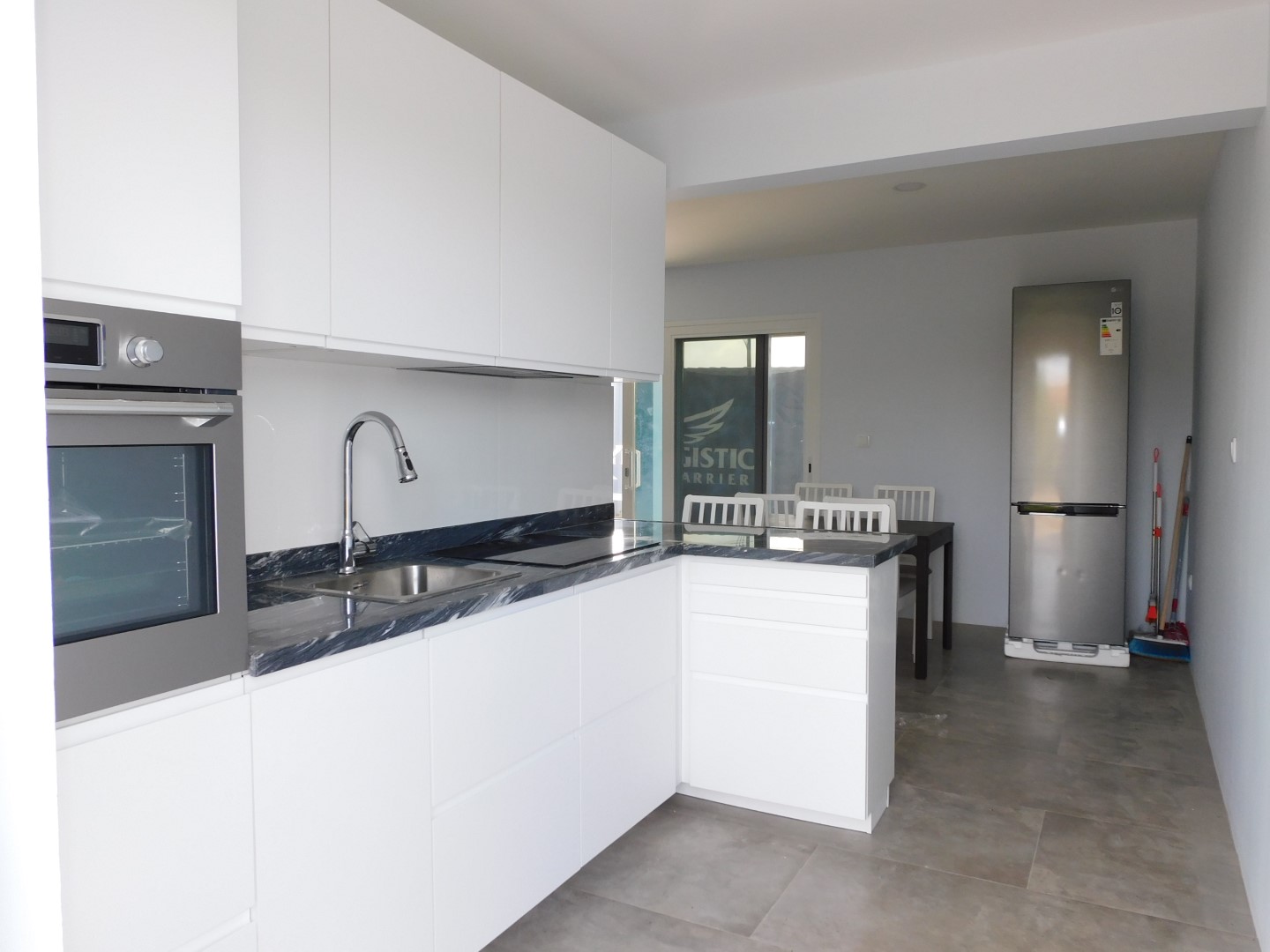 Je komt de woning binnen in de keuken. Deze is uitgerust met een vaatwasser, kookplaat, koelkast en oven. Er is een klein barretje aan het keukenblok met 2 barkrukken. In de woonkamer staat een eetkamertafel met 4 stoelen, een bank die omgetoverd kan worden tot 2 persoonslogeerbed met opbergruimte eronder en een tv-meubel met tv. Er is een gastentoilet en een aparte ruimte waar de wasmachine staat en extra opbergruimte onder de trap. Via de woonkamer kom je op de porch. Boven zijn er twee slaapkamers beide voorzien van een bed, kast met spiegel en een airco. Elke slaapkamer heeft zijn eigen badkamer.