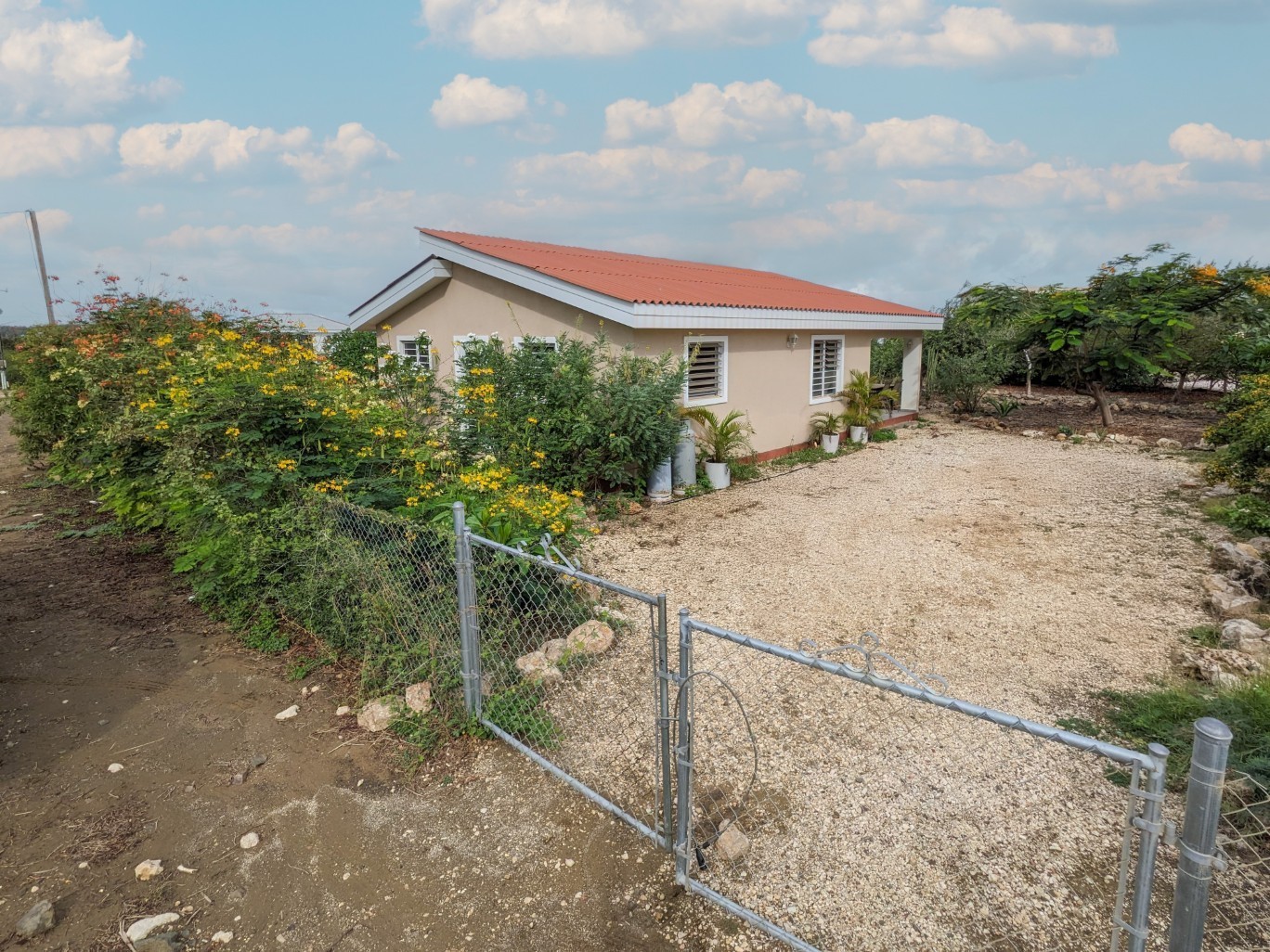 Through the mature garden, you enter this cozy home. Upon arrival, you step into an open, modern kitchen equipped with a refrigerator, freezer, oven, and gas stove.