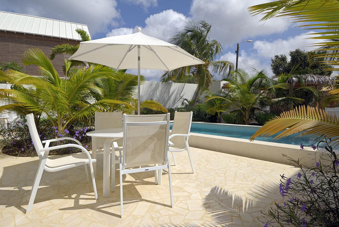 Right in the center of Kralendijk spacious oceanfront apartments situated around a patio ('pleinchi') with pool and tropical garden. The luxurious studios are fully furnished with living, kitchenette, bedroom and bathroom and have air-conditioning.