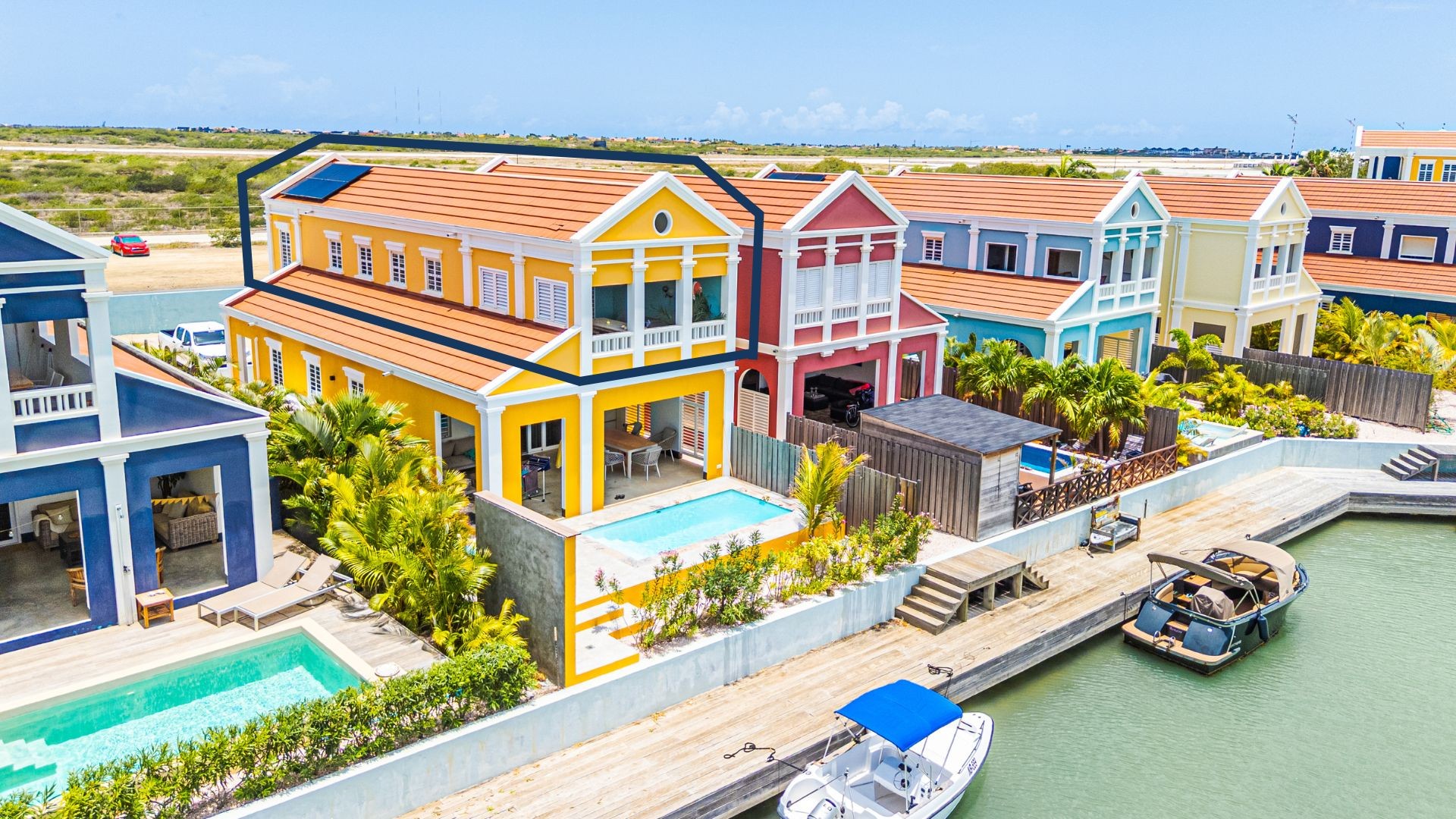 Thanks to the favorable zoning of this area, both short- and long-term rentals are permitted, as well as using it as your own residence. The dock is jointly owned and an apartment owner can moor their own boat here. Through the lagoon, there is an open connection to the ocean in the direction of Plaza Resort. At the front of the property, the apartment has its own private parking space.